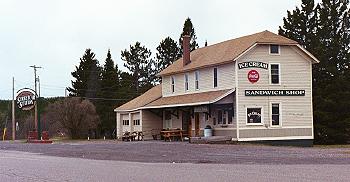 As you can see by the picture, this is Ahmeek's town hall. Or is it? On page 9 of Monette's book on Ahmeek he has a picture identifying a building as the town hall but it is definitely NOT the same building. (the one in his picture has a pitched roof, not a flat one.) I guess I'll have to resolve this next time I'm up there. |