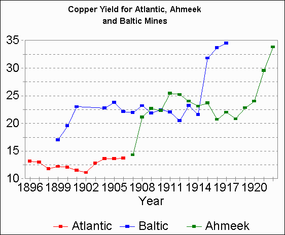 11. Created from data taken from the Atlantic Mine, Ahmeek Mine, Baltic Mine, and Copper