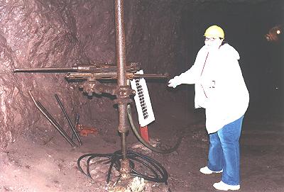 You can't run a mine without diligent miners. And here's one of them. Well, maybe not quite. This is my wife Kathalina doing her best to figure out how to use the miner's drill. |