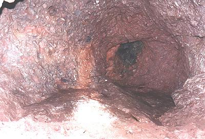 | Oddly enough, not many photos taken in the mine turned out, something to do with it being really dark in there I think. :) But this one did. It's a strange one, for sure. This is a shot looking directly overhead in an area of level one. I don't recall what they called this feature, but it has to do with exploratory blasting I suppose. It's also a good shot of the conglomerate rock that makes up this area. |