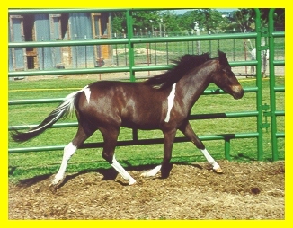 Magilla is a snowflake grullo appaloosa . Her show record is incredible : 1999 National Champion 32-34 Senior Mare, Reserve Grand National Champion Sr Mare, Reserve National Champion Amateur Mare, and 5 top tens in performance: hunter, pleasure driving, and versatility. Magilla is in foal to C-Chief Proud Eagle for 2000. |