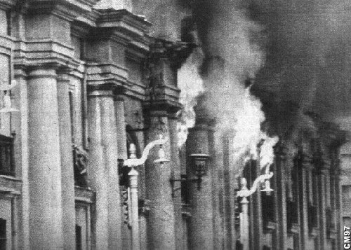 La Moneda, built in 1806 by the architect Manuel Toesca goes up in flames, putting an end to an era of turbulence.
