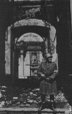 La Moneda the next day: in ruins under the custody of the Carabineros (police corps).