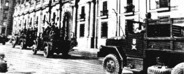 Movilización de soldados a La Moneda, para neutralizar a los guerrilleros todavía activos, que disparaban del palacio y los edificios aledaños.
