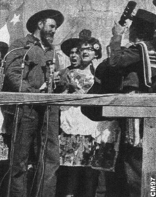 Fidel Castro during his visit to Chile in 1972 dressed in the traditional "Huaso"(local cowboy) costume, preaching revoltuion, with other traitors and communists.