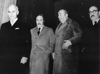 PARIS, FEBRERO 1972: ORLANDO LETELIER, PABLO NERUDA (Embajador de Chile en Francia) Y CLODOMIRO ALMEYDA (MINISTRO DE RELACIONES EXTERIORES) EN FRANCIA PARA NEGOCIAR LA DEUDA EXTERNA DE CHILE