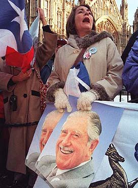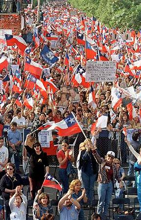 Here we can see massive support for Pinochet in Santiago, after his arbitrary detention in London.