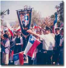 General Pinochet was finally allowed to go home due to his advanced age and the multiple strokes he suffered during his 503 days of arbitrary arrest in London. We, the Chilean Anti-Communist League declare ourselves joyfull at the much anticipated return of the Senator, and proud of having made our voices heard, among with many other supporters in Chile and abroad. Finally Chile's national sovereignity was respected. But as all Chileans, it will be hard to forget the atittudes of the Spanish, English, Belgian and Swiss governments, and their little respect for our democracy and institutions. We thank everyones support during these 16 months, a true show of solidarity and common sense against marxist lies and propaganda. Finally real justice triumphed over vengeance from the communist exiles. Once again, Senator Pinochet has defeated marxism and its international allies, now known as "human rights" activists. These cold bloded killers are the same ones who cry over human rights and who are supported by Amnesty International and other hypocrites. Finally this political fiasco was put to an end by the weak urgings of the Chilean government and Jack Straw. In a last desperate attempt, the ultra-socialist, prime minister of Belgium, Luis Michelle, and the cheap judge garzon tried to stop the release by asking for new medical checks, and continue the marxist vengeance. Lets not forget that it wasn't the complete fault of these socialist governments, but of communist exile traitors who were once Chileans, and urged 'their' governments to take action against the patriot Pinochet.