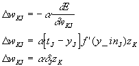 Using the above expressions, we can calculate the weight changes for the weights between the hidden and output nodes. Once again, a learning rate constant is introduced to control the speed of learning.