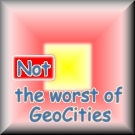 This site has received the NOT the worst of Geocities award!.Click on the graphic to learn more about this award.Choose a section of my page to go to: The current time is: Click to see hit history |