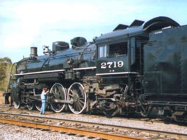 "Oiling around" after two successful trips on Saturday afternoon, the crew of the 2719 make sure that the locomotive is ready for the next day's operations.