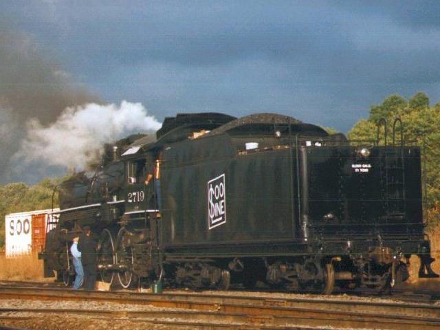 Here are a couple of more shots from Friday morning. That afternoon, we travelled to Stevens Point and spent the night and Saturday morning there, enjoying the Soo Line Historical and Technical Society's annual convention. It included a tour through the Wisconsin Central shops there, and I also caught some switching action at a local paper mill (pictures to follow at my up-coming WCL site). We returned to Cadott on Saturday afternoon and I got a couple more shots at Irvine as the 2719 was being serviced after two successful trips Saturday afternoon.