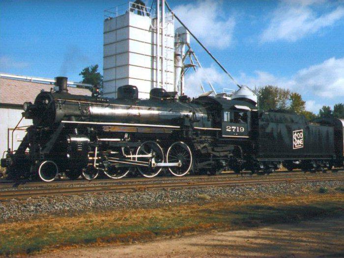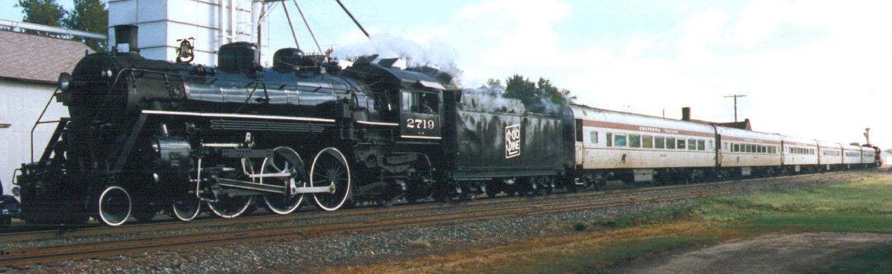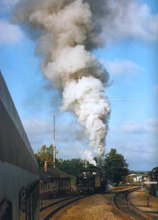 The 2719 fires a plume of smoke high into the air as she backs down to her six-car train. Photo was taken Sunday morning, September 27, 1998. |