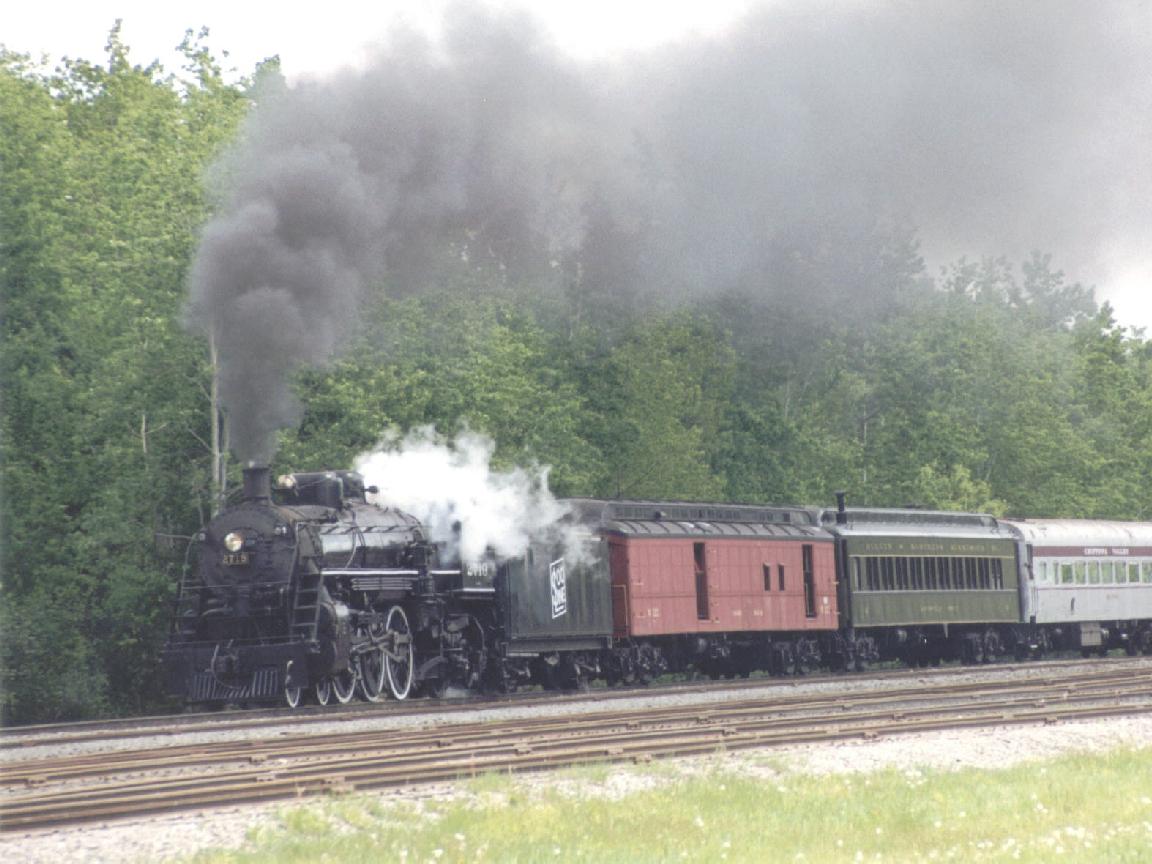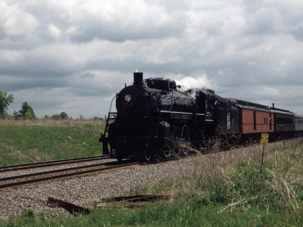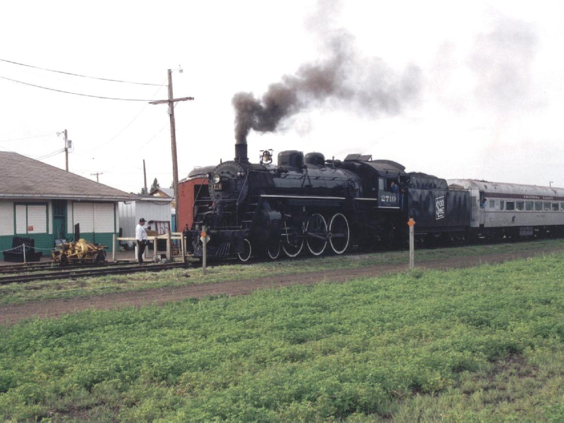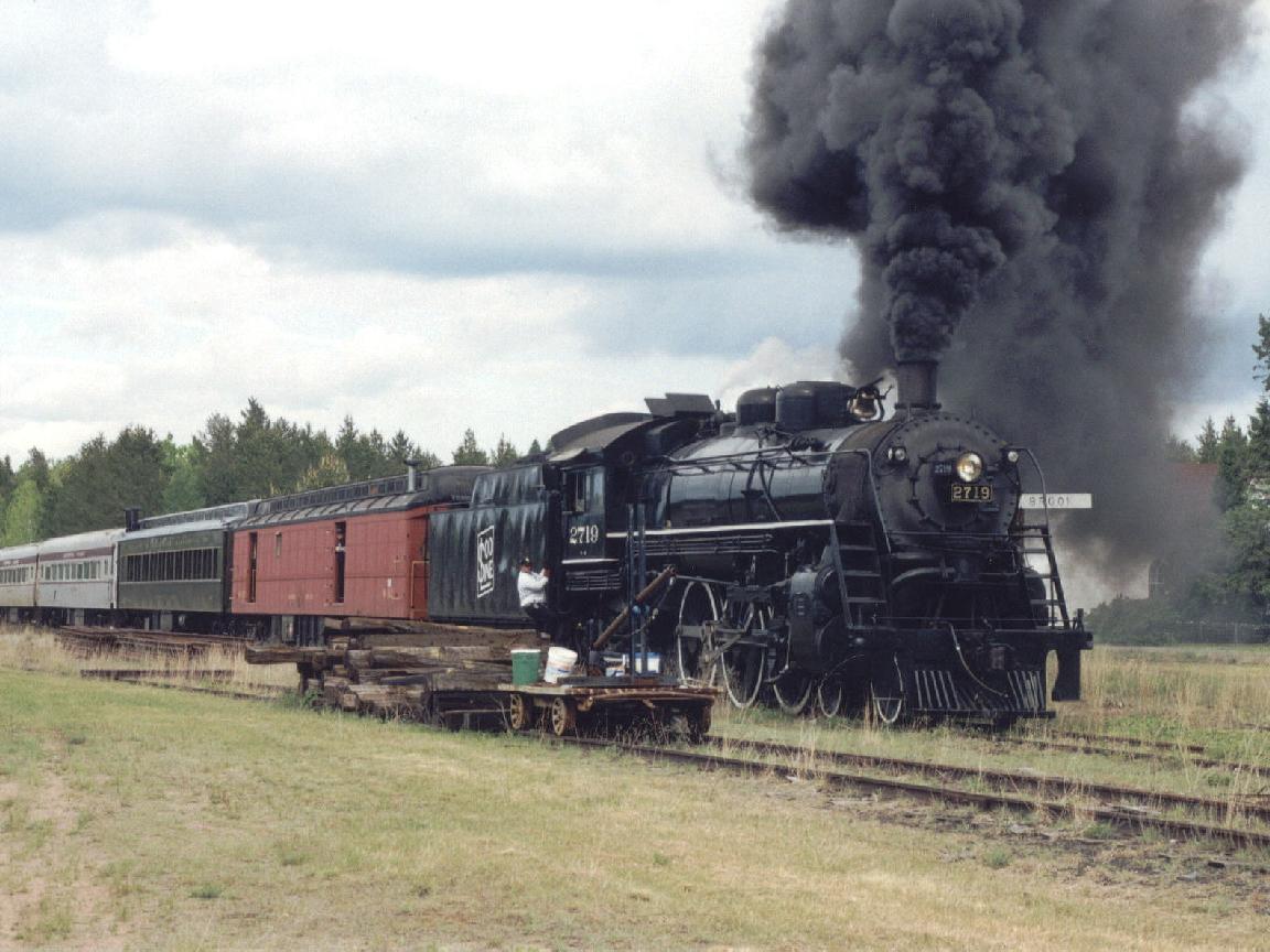 They're proportioned to use as wallpaper. # 2719 pulls her train north past the depot. She will be backed down onto the Barron Sub for servicing before continuing north.