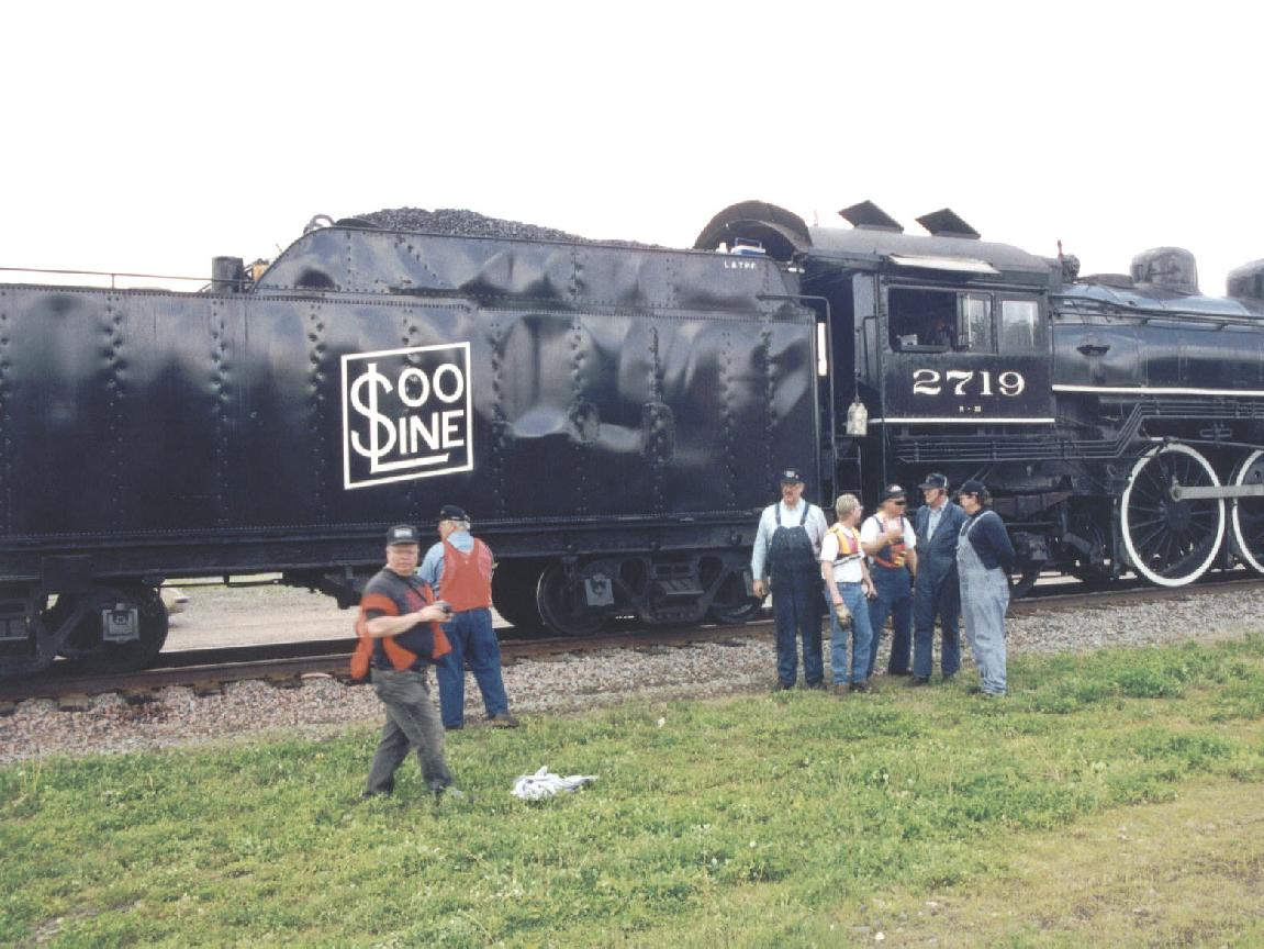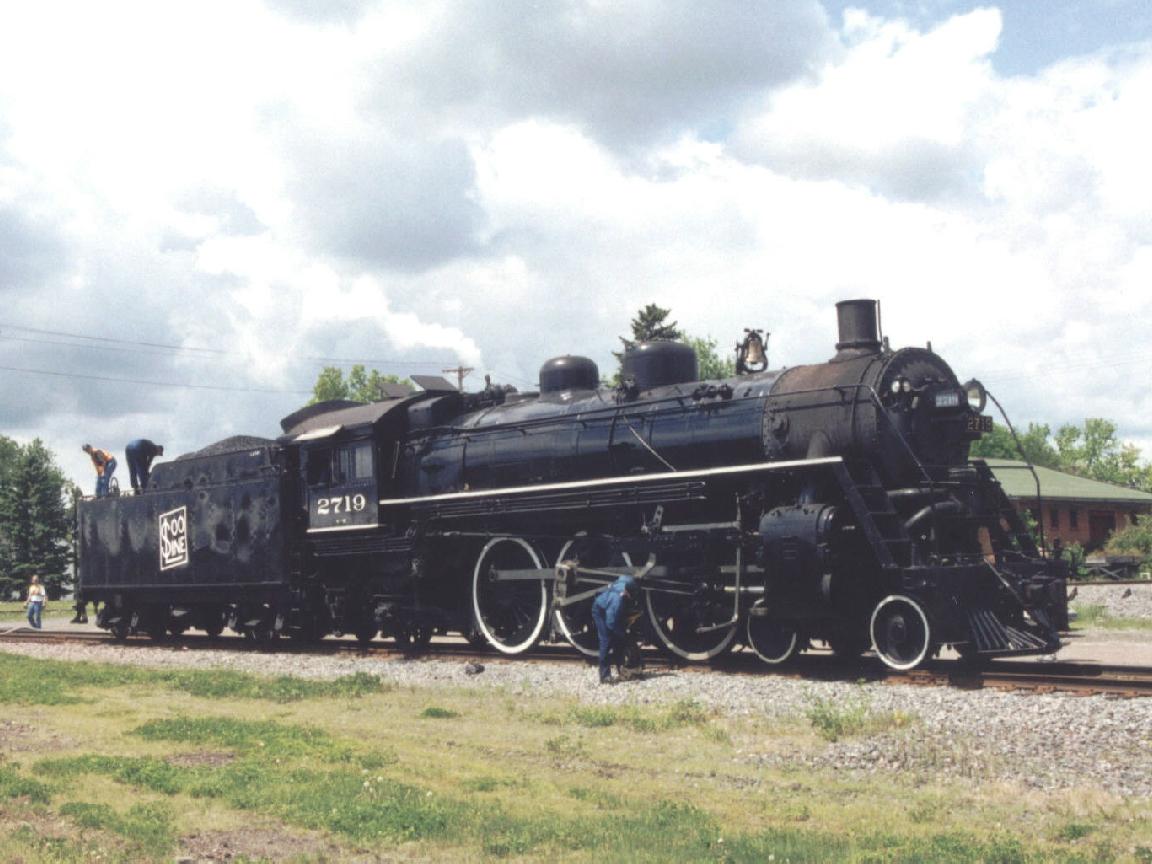 Right-click and choose - Set as Wallpaper # 2719 has uncoupled from her train and pulled forward to where she can be fed by the local Fire Department. The crew performs an oil-around and general inspection.