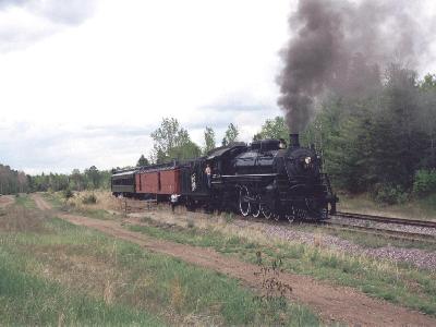 Here we are on Wisconsin Great Northern tracks. The big Pacific has pulled her train through Hayward Junction and started down the old Chicago, St. Paul, Minneapolis and Omaha line bound for Spooner.