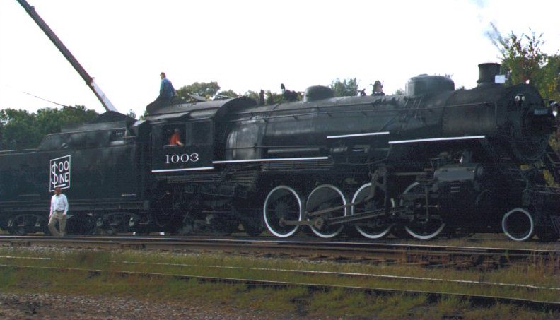 Engine 1003 could operate over all of the Soo Line except for a few of the branches which had very light rail. The 1003 operated regularly through the Chippewa Falls area while in regular service. These engines were considered versatile and efficient. The engine was originally purchased in 1913 for a cost of $25,654.63. Scrap prices obtained from engines of this size in the late 1950s was about $5,000.00. The end of steam sounded on the Soo Line in the early 1950s. The 1003 was one of about ten engines that were held in reserve from the scrap heap and maintained in standby condition in the event that there would not be enough diesel power after the Korean War. Trackside water tanks and coal sheds were also retained during this period on the Shoreham (Twin Cities) to Sault Ste. Marie line so that in the event business levels increased, steam could take over on this district and release diesels to other areas. In 1959, it was decided to retire all steam facilities. Engine 1003 was retired in August 1959 and presented to the City of Superior on December 30th where it remained on static display. It is estimated that it logged approximately 1.75 million miles while in active service. Restoration In the 1980s, a group of railroad enthusiasts in Superior attempted to begin a restoration of the engine, however, the effort fell through. In 1994, the Wisconsin Railway Preservation Trust approached the City of Superior and purchased the engine and late in 1994 it was moved into a warehouse in Superior, owned by Fleming Foods. Restoration was completed at this location in November 1996. This excursion represents one of the first trips of a revenue excursion by the 1003. As you travel today, ponder a few of these facts: