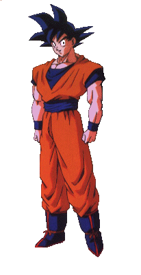 Goku, de cabello negro salvaje con una linea retrocediente en su cabello.