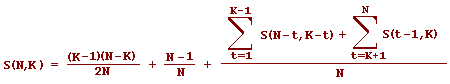 ((K - 1) (N - K) / 2N) + (N - 1) / N
