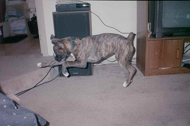 The pictures on the other pages of Cleo and Sara are my dogs that I used to have. They passed away in Feburary of 1999. My ex and I got this dog in October of 1999. He was born on Aug. 9, 1999.