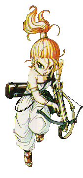 Name: Lucca Genoa Age: 18 Gender: Female Birthplace: Pierre, 982 A.D. AKA: N/A Relations: Father: Tanba, great inventor Mother: Lara, lost her legs in an accident Weapon of Choice: Gun >:)